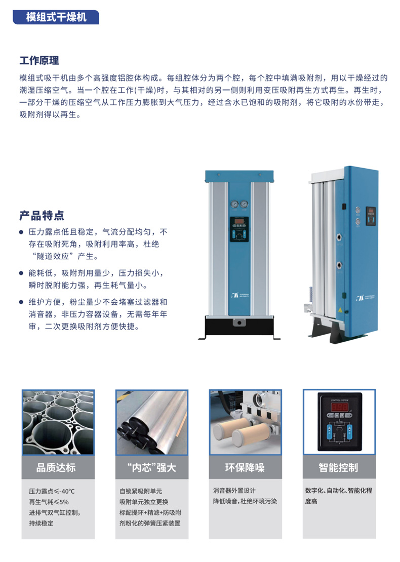 模组吸附式干燥机,简单可靠且具有成本效益,适用于各种压缩空气净化系统。